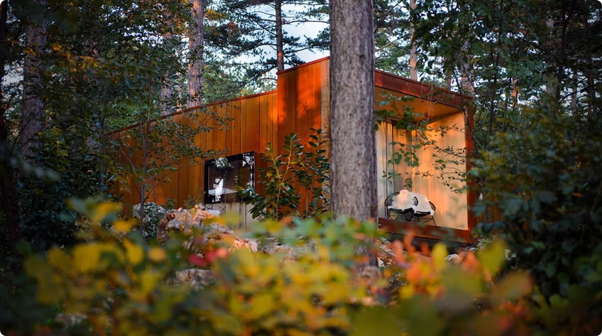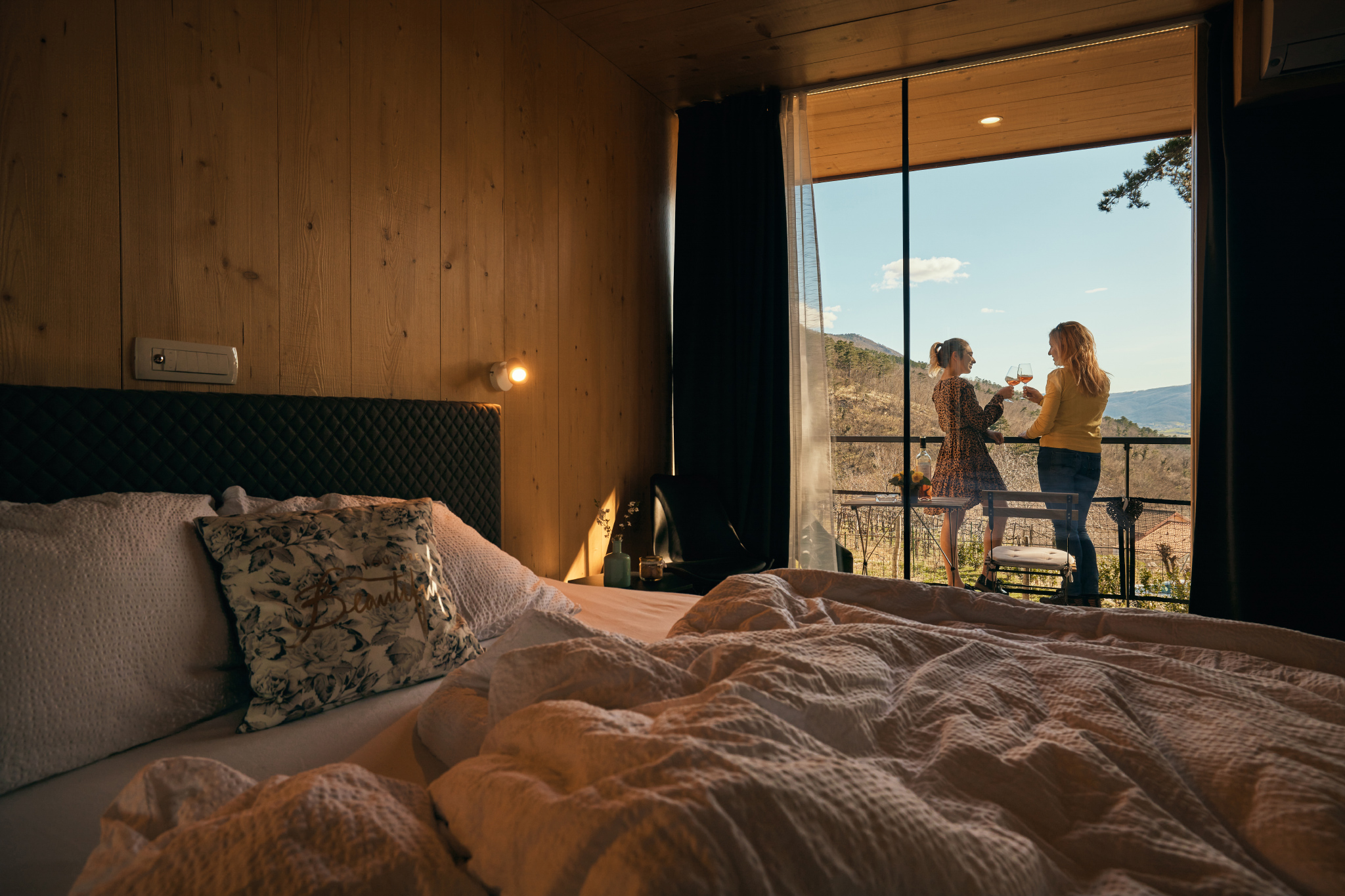 Hidden in a centennial pine forest overlooking the majestic Vipava Valley, Forest Village Theodosius can’t wait to embrace you in its welcoming arms. Right at the edge of Vrhpolje village, just a step away from everyday bustle, is where you’ll find the perfect combination of both worlds: truly authentic nature and modern comfort.