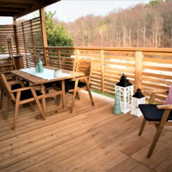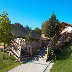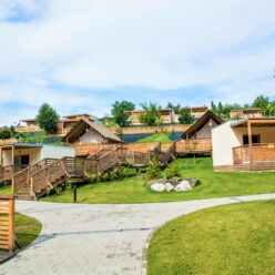 All accommodation units are equipped with modern amenities to ensure a perfect quality of life: living room, bedroom, kitchen with all necessary equipment, private bathroom with shower and toilet, air conditioning, heating, terrace with garden furniture and private wooden bathtub with geothermal water (some units – extra charge).