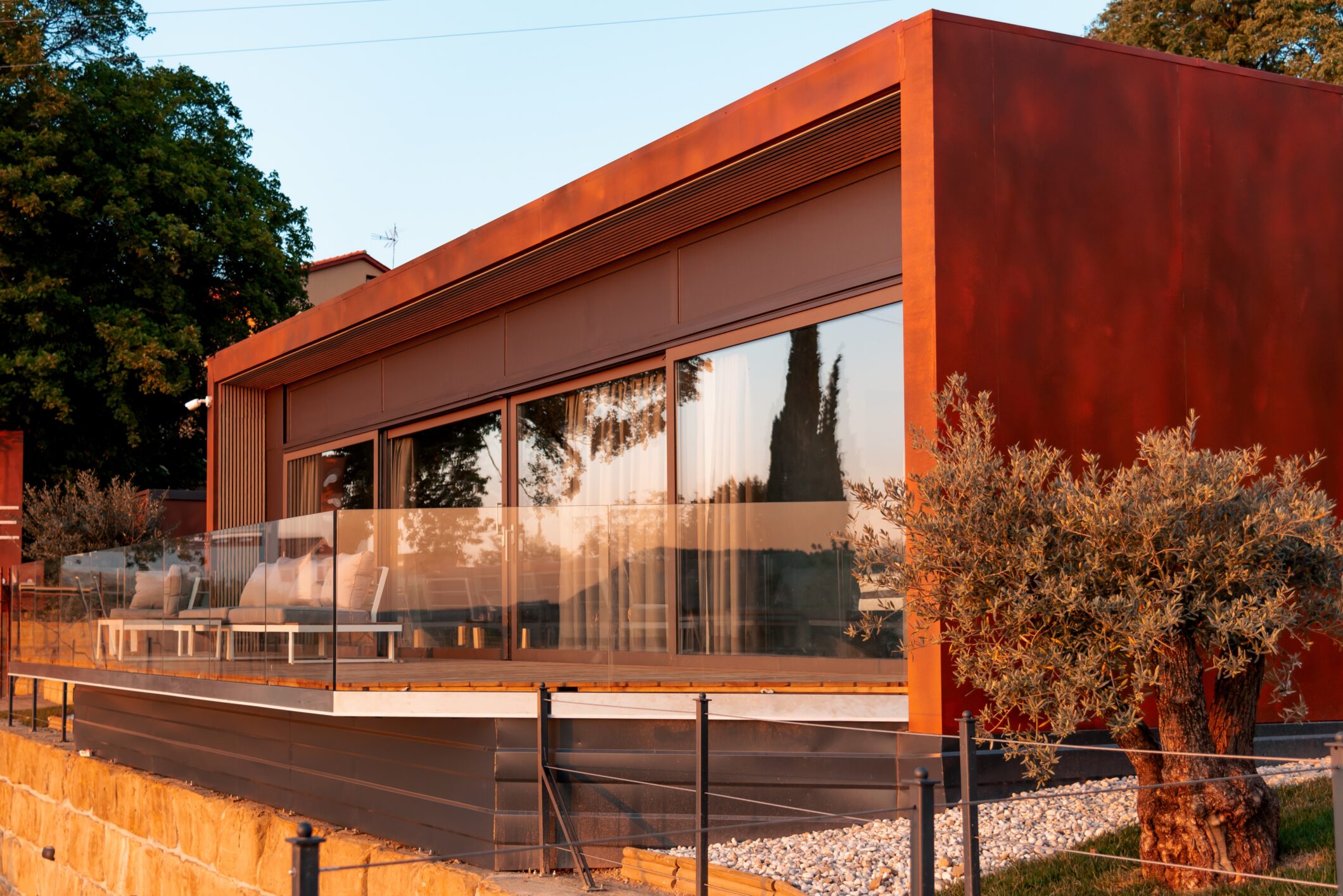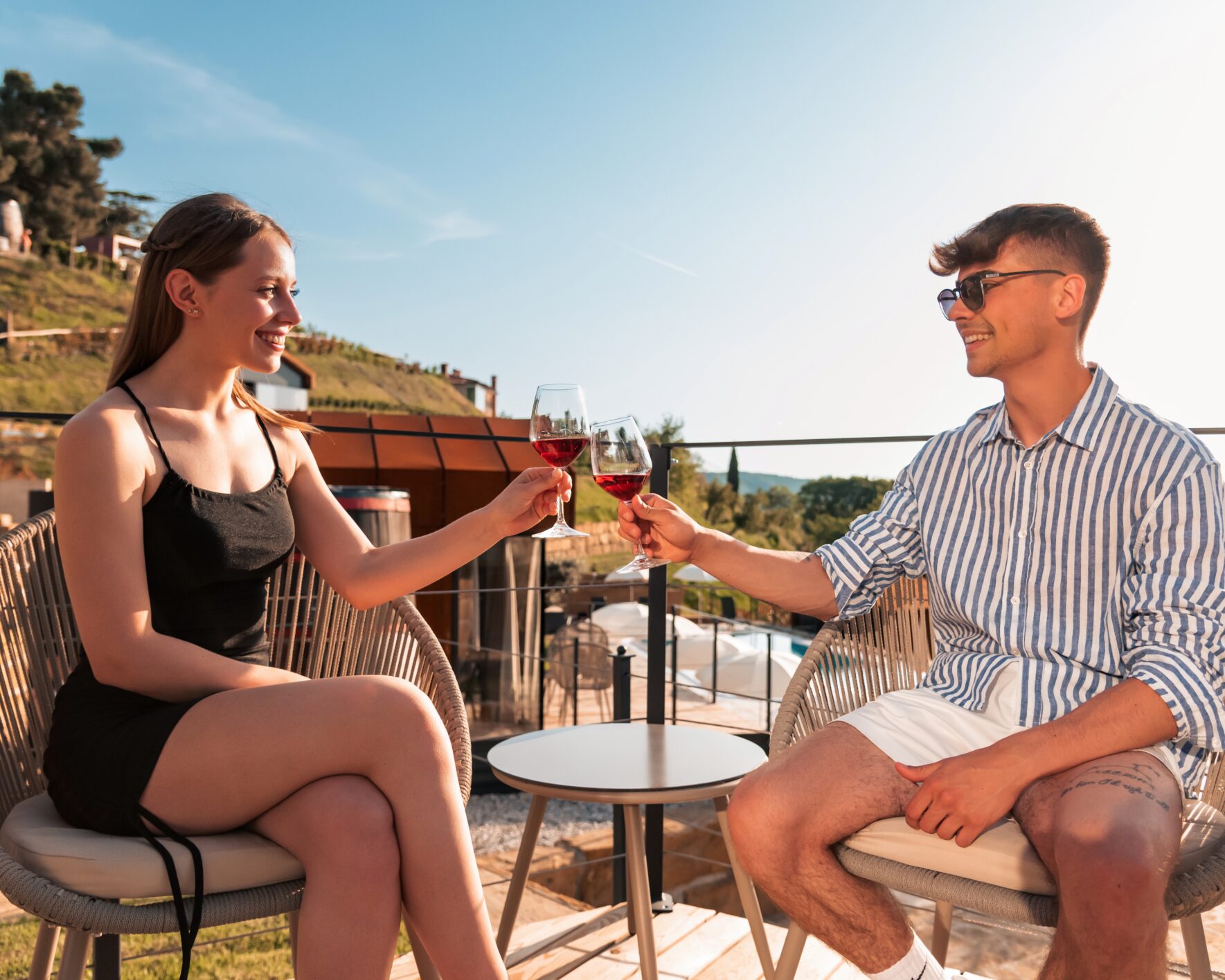 Red or, as we say in Marezige, black wine reigns supreme among all wines. The same applies to the red houses, which, in addition to access to public pools and a private hot tub, also have a private sauna.