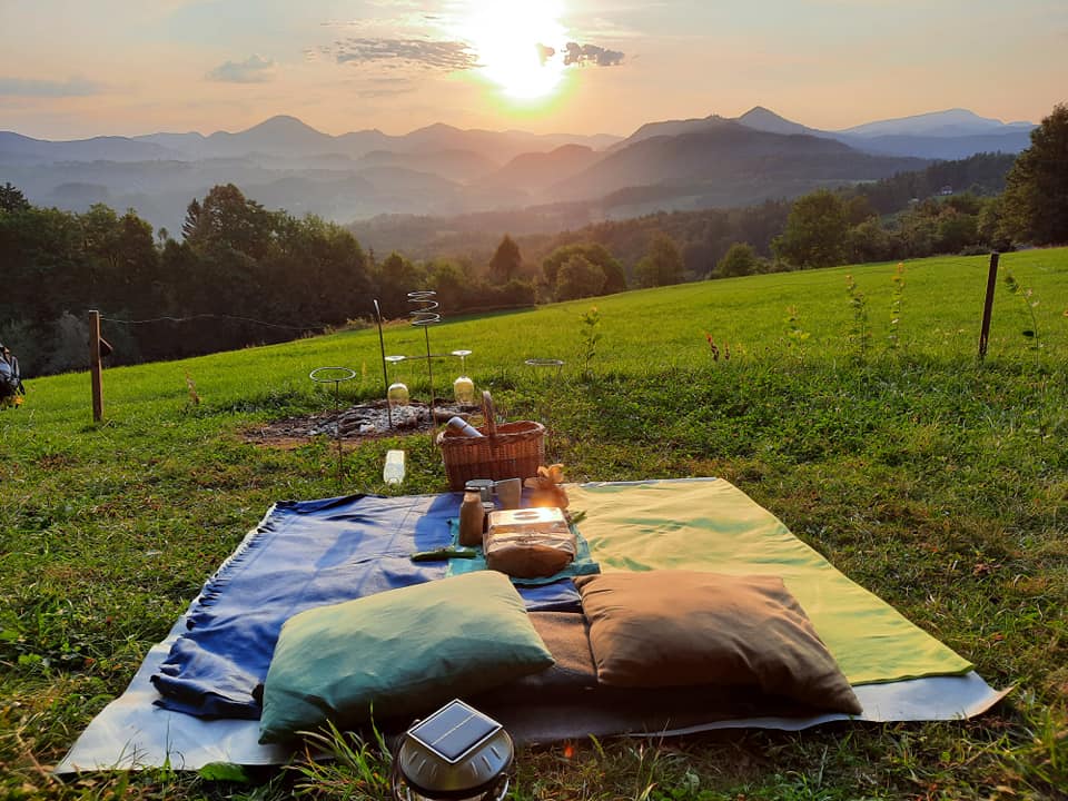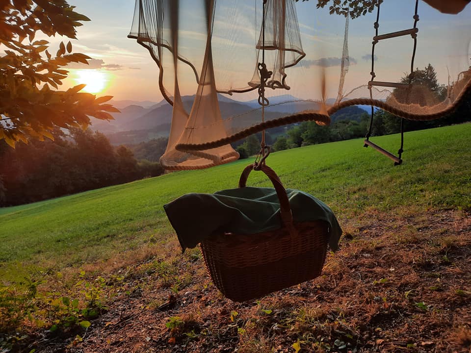 When you decide to sleep in nature, you accept the challenge of “survival in the wild.” A treehouse cannot offer such experince, because it protects you from the wind and cold and takes away a view of the stars. A treebed on the other hand offers exactly that – an experience of sleeping in nature, covered only with a blanket and protected by a mosquito net. You are high above ground, so that wild animals cannot reach you, but you still have a privilege of observing the stars before closing your eyes, feeling the wind on your cheeck, just before you cover yourself with a blanket. After you pull up a ladder or rope, it is just you and the person next to you in a perfectly romantic natural envirnoment. Morning sun will shine directly into your bed and wake you up with its warmth, if the birds won’t wake you up even before that with their singing. Therefore, staying in the canopy is not only sleeping in a tree, but a real survival in the wild. Food and security will be provided, but since we are not used to living in nature anymore, a night in treetops can still be a big challenge for some .. but one worth taking, because it really is a unique experience. Your evening will start witha romantic dinner in the meadow and will finish with a breakfast in bed the next morning.