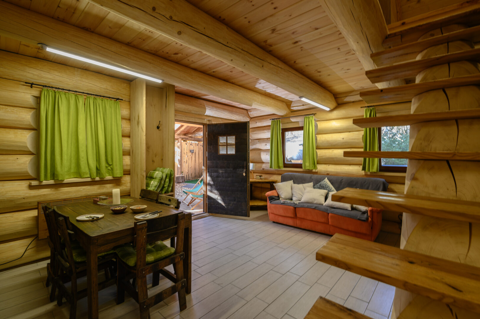 - nočitev v leseni hiški z jacuzzijem za 6 oseb (3 spalnice)