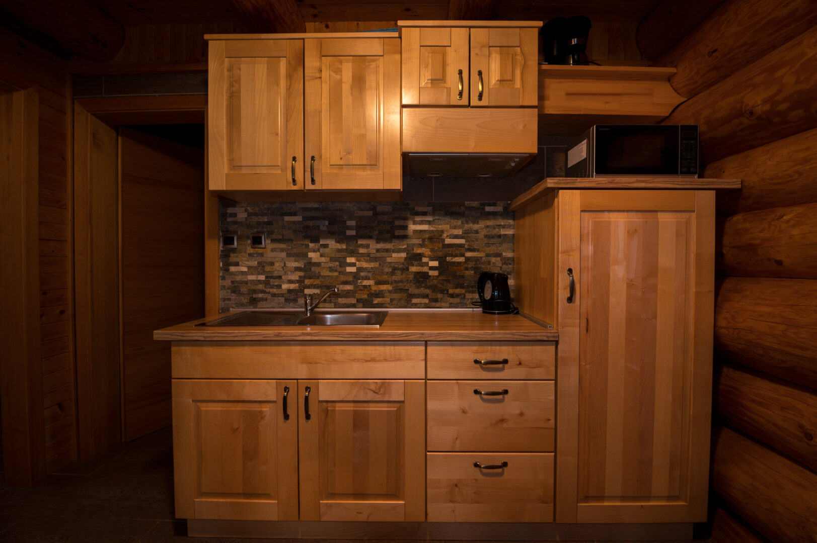 Eko lesene hišice so zgradili lokalni mojstri, deloma celo iz več kot 100 let starega lesa iz okolice. Tako ponazarja bogato naravno dediščino Zgornje Savinske doline.