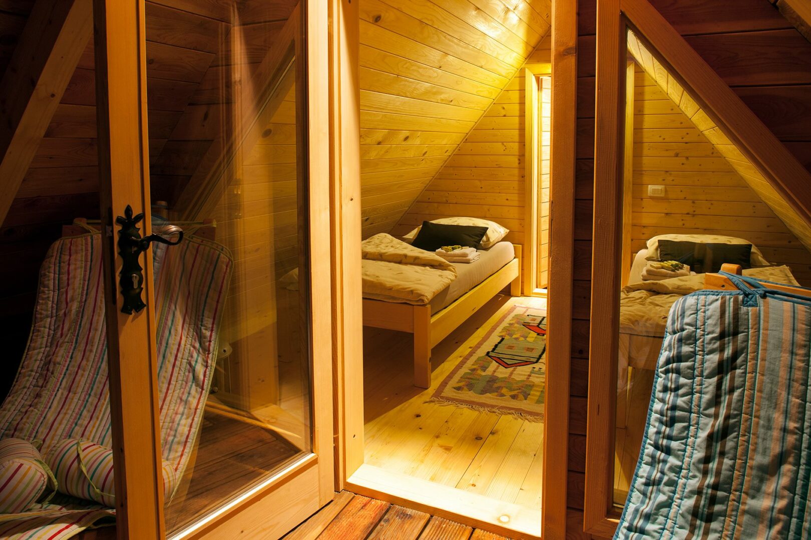 - nočitev v lesenem kozolcu s tremi spalnicami in dvema balkonoma