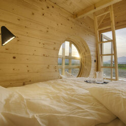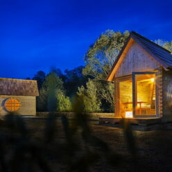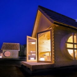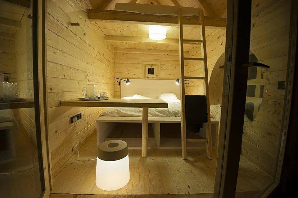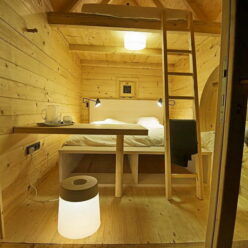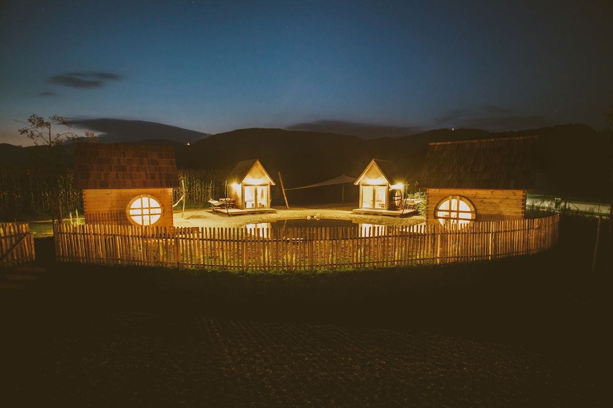 Lesene hišice, katere so postavljene med pšenična polja, spominjajo na stare lesene mline na vodi, ki so nekoč obratovali na Dravi. V celoti izdelane iz lesa nam dajejo občutek topline in udobja. Okrogla okna in steklena vrata, ki se odpirajo v naravo nam dajejo pridih romantike in s tem je namestitev zagotovo nekaj posebnega. V hišicah lahko prespijo 4 osebe, saj hiška vsebuje v spodnjem delu zakonsko posteljo, v gornji etaži pa dodatno posteljo za 2 osebi. Privoščite si lahko okusen zajtrk, ki ga z domačimi dobrotami pripravijo v košari in dostavijo pred vašo hišico.