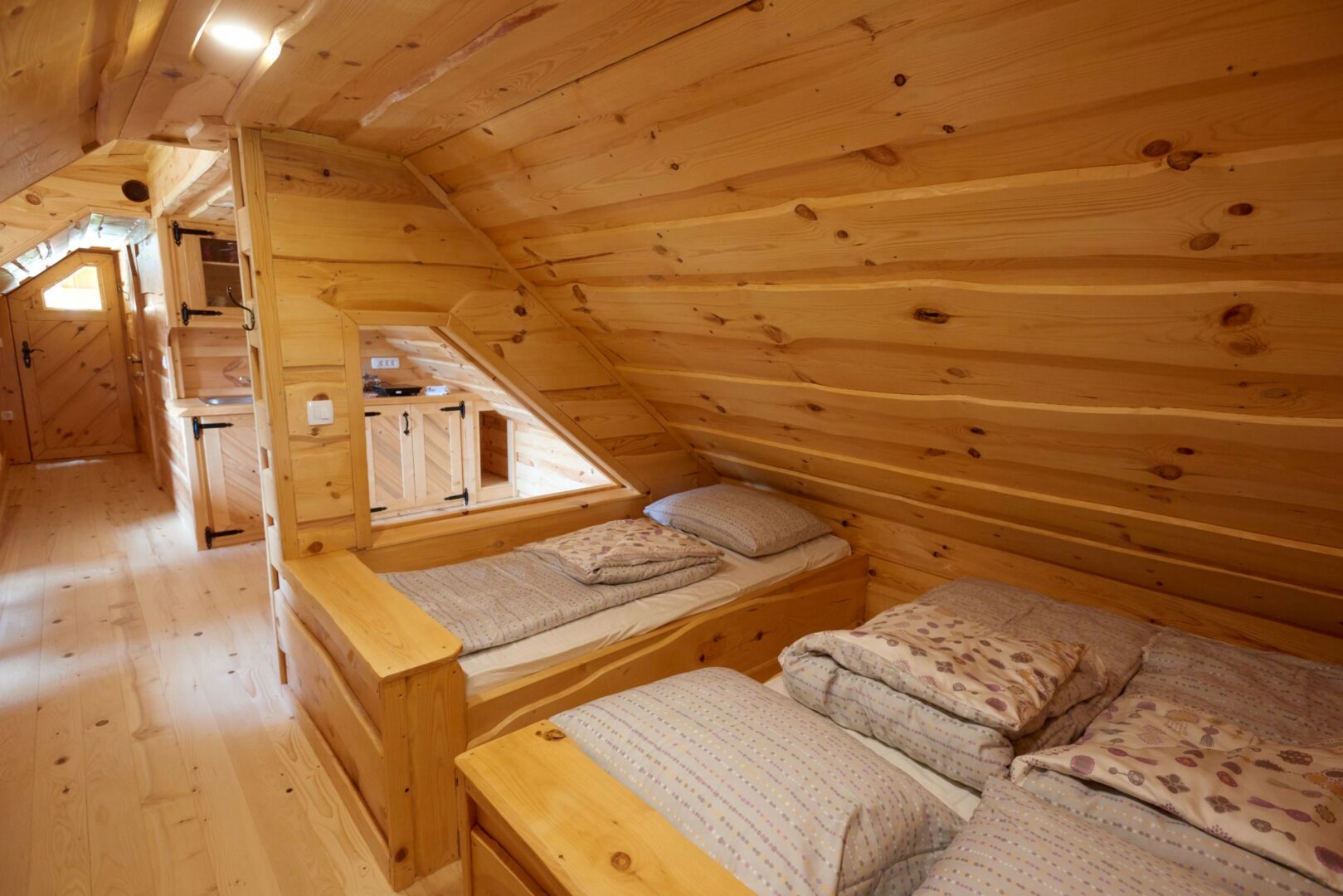 Pastirska koča ima polno opremljeno kuhinjo, kopalnico s savno in odprto spalnico s šestimi posteljami ter teraso z zunanjo leseno toplo kadjo. Gostom je na voljo tudi posteljnina, brisače, ogrevanje ter brezplačen Wi-Fi.