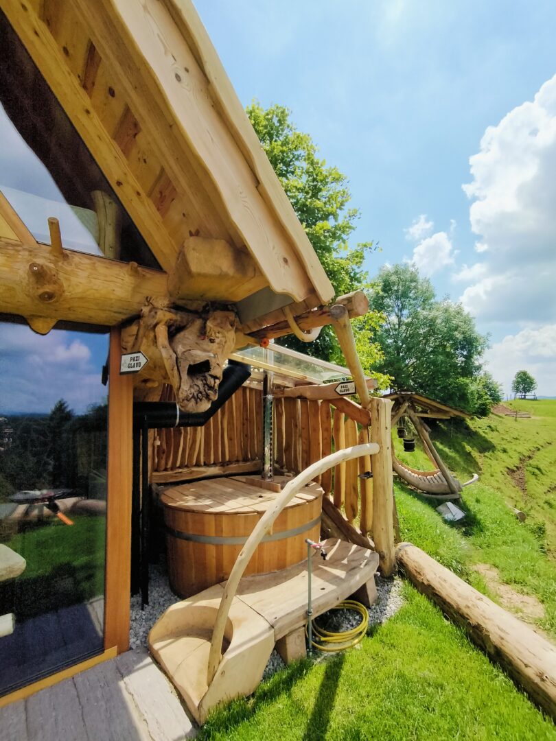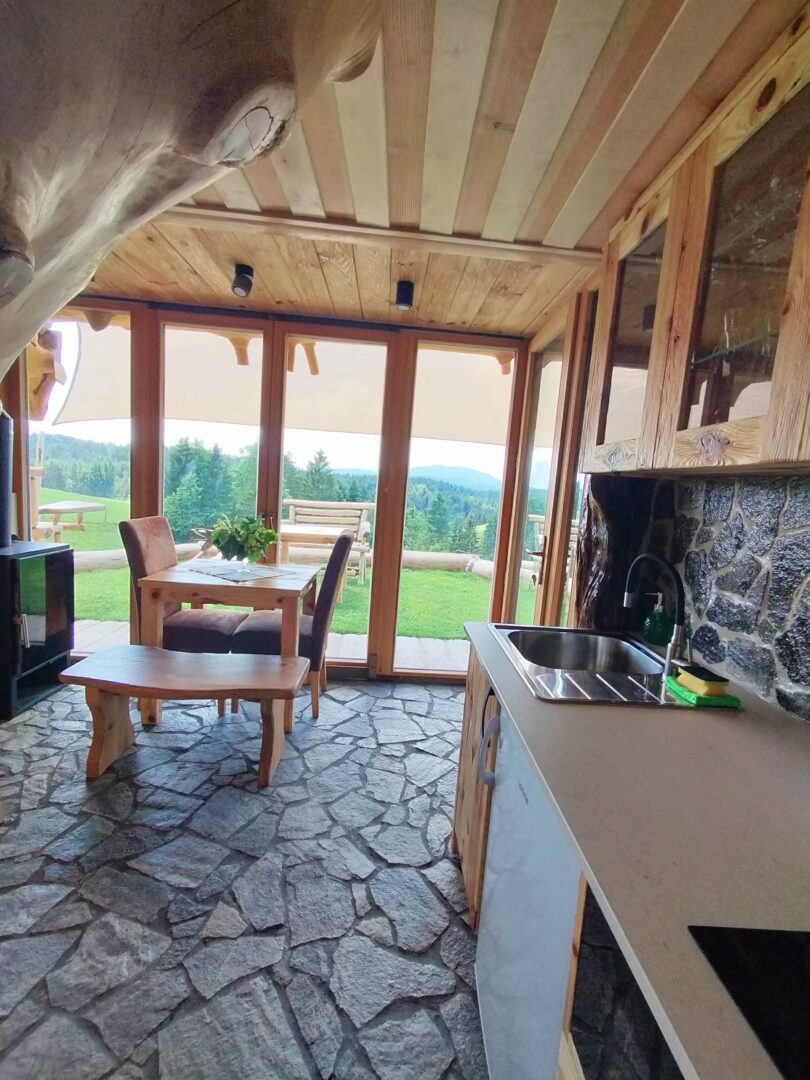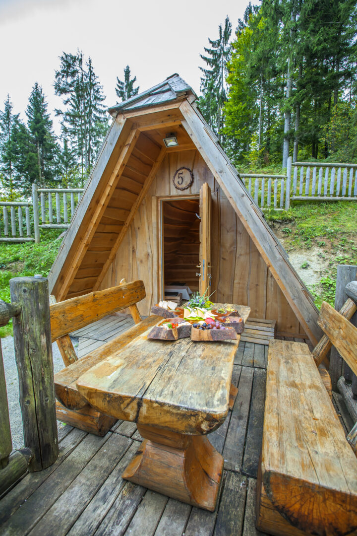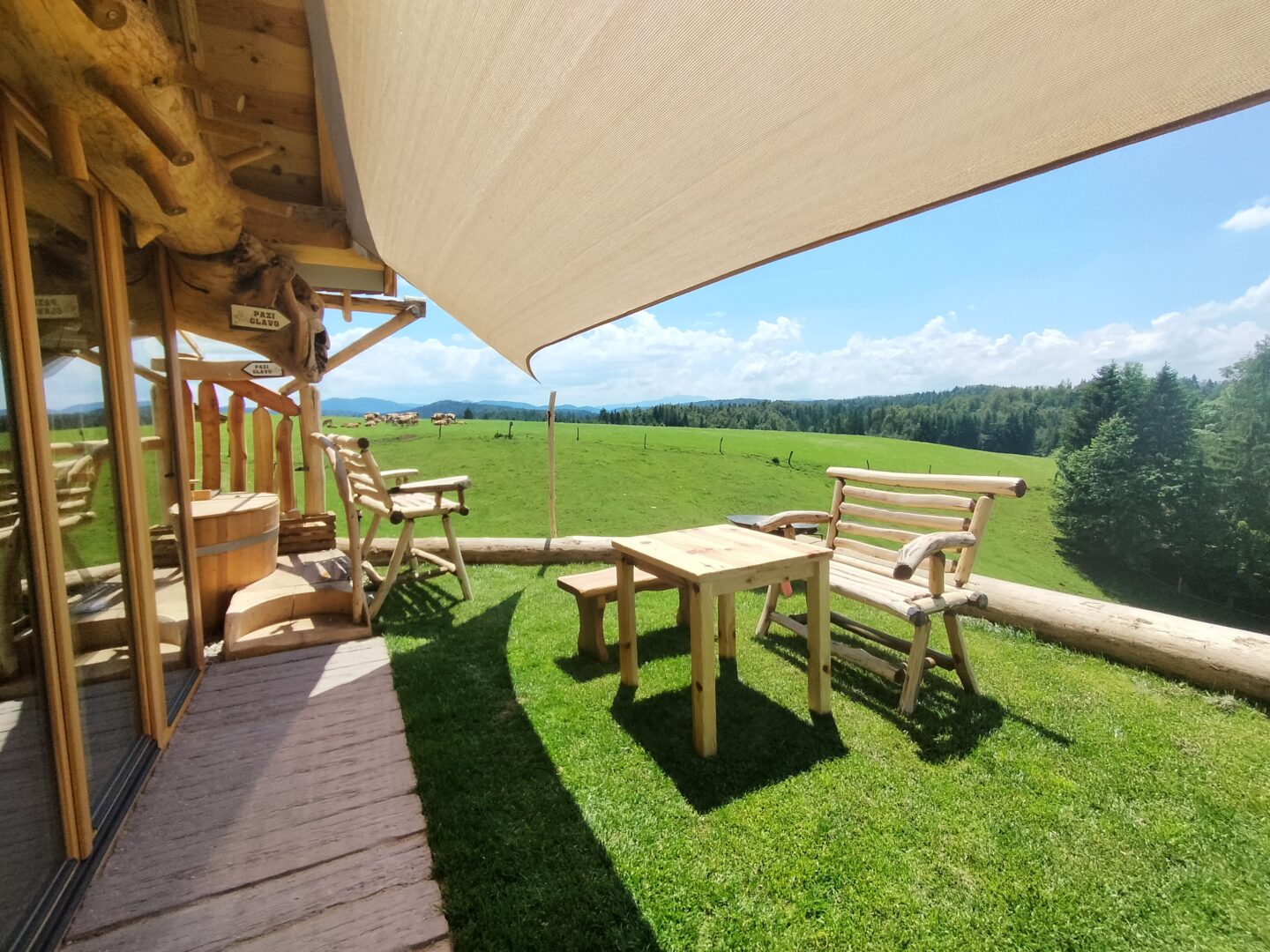 Cena vključuje: 1 nočitev za 2 osebi v ročno izdelani Pastirski koči s čudovitim razgledom iz savne in jacuzzija