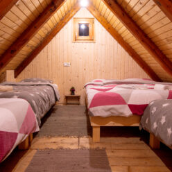 • dodatna oseba 30€ / nočitev (otroci nad 9 let do vključno 17. leta starosti 20 € / nočitev, do vključno 9. leta starosti 5 € / nočitev). Koča lahko sprejme do 9 oseb.