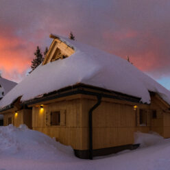 Cena vključuje: 2 nočitvi v luksuzni koči Zlatorog na Veliki planini s čudovitim razgledom med oblaki in kulinarično razvajanje s planinskim zajtrkom.