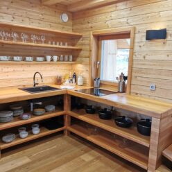 V koči je popolnoma opremljena kuhinja, hladilnik, kamin, talno gretje, kopalnica s prho, sušilec za lase, posteljnina, brisače, copati, finska savna ter brezplačen Wi-Fi. Za uživanje v prekrasnem razgledu so na terasi pred kočo na voljo ležalniki, za piknika željne pa zidan žar.