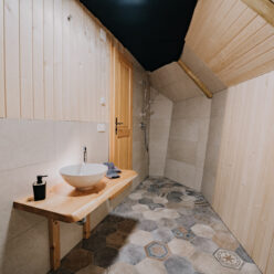 V koči je popolnoma opremljena kuhinja, hladilnik, kamin s panoramskim steklom, kopalnica s prho in talnim gretjem, sušilec za lase, posteljnina, brisače, copati, finska savna ter brezplačen Wi-Fi.