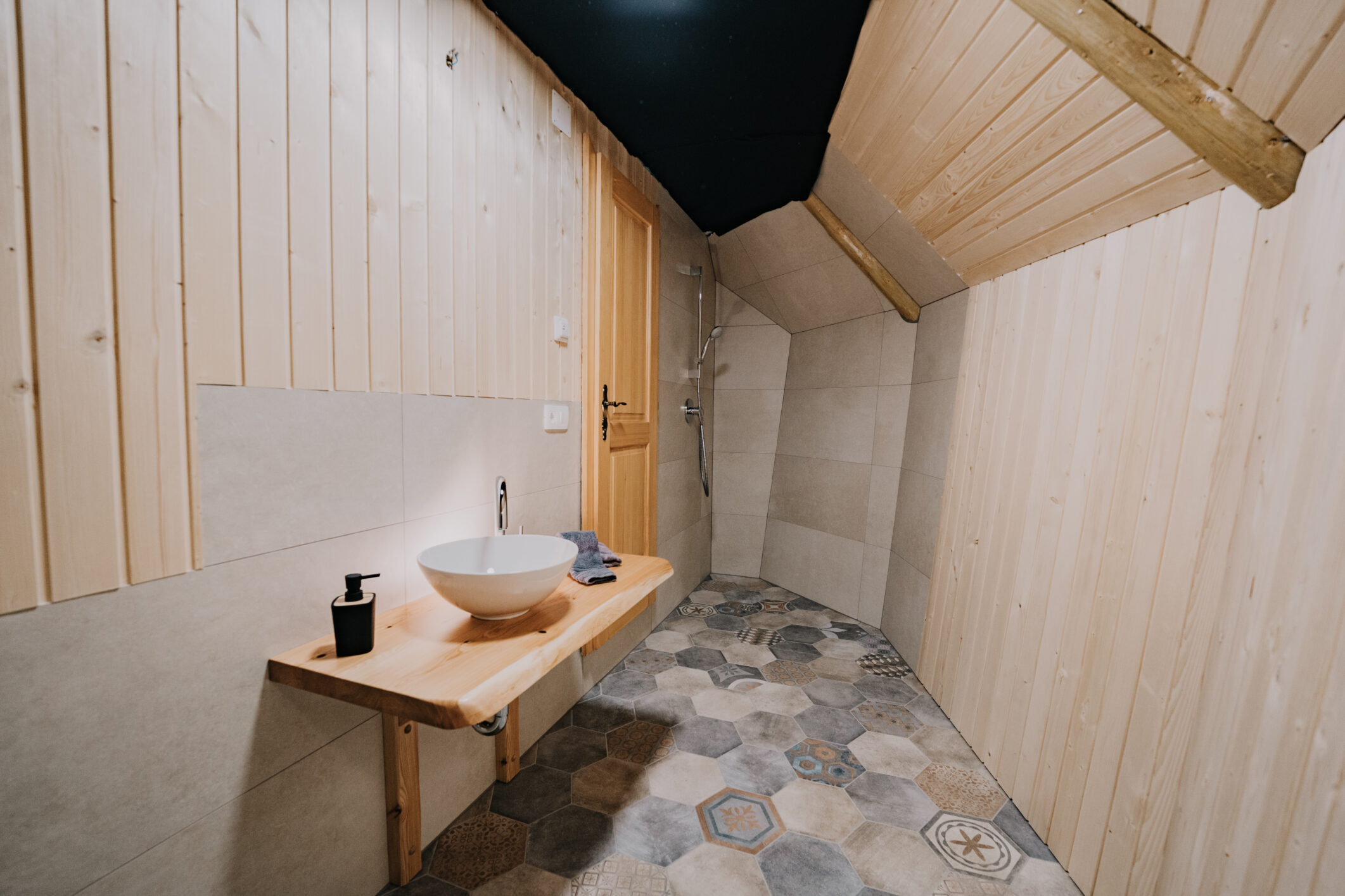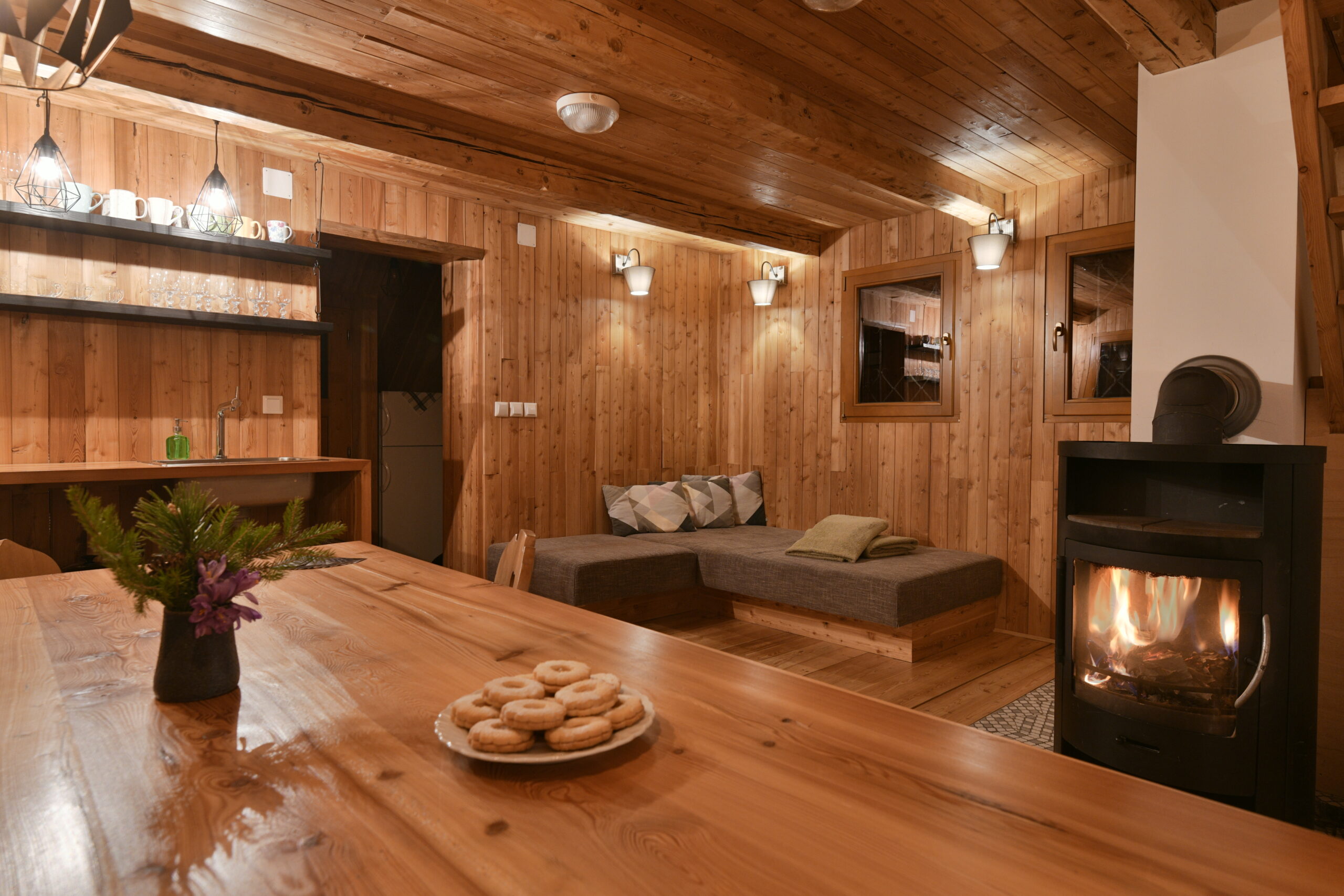 V koči je popolnoma opremljena kuhinja, hladilnik, kamin s panoramskim steklom, kopalnica s prho in talnim gretjem, sušilec za lase, posteljnina, brisače, copati, finska savna ter brezplačen Wi-Fi.