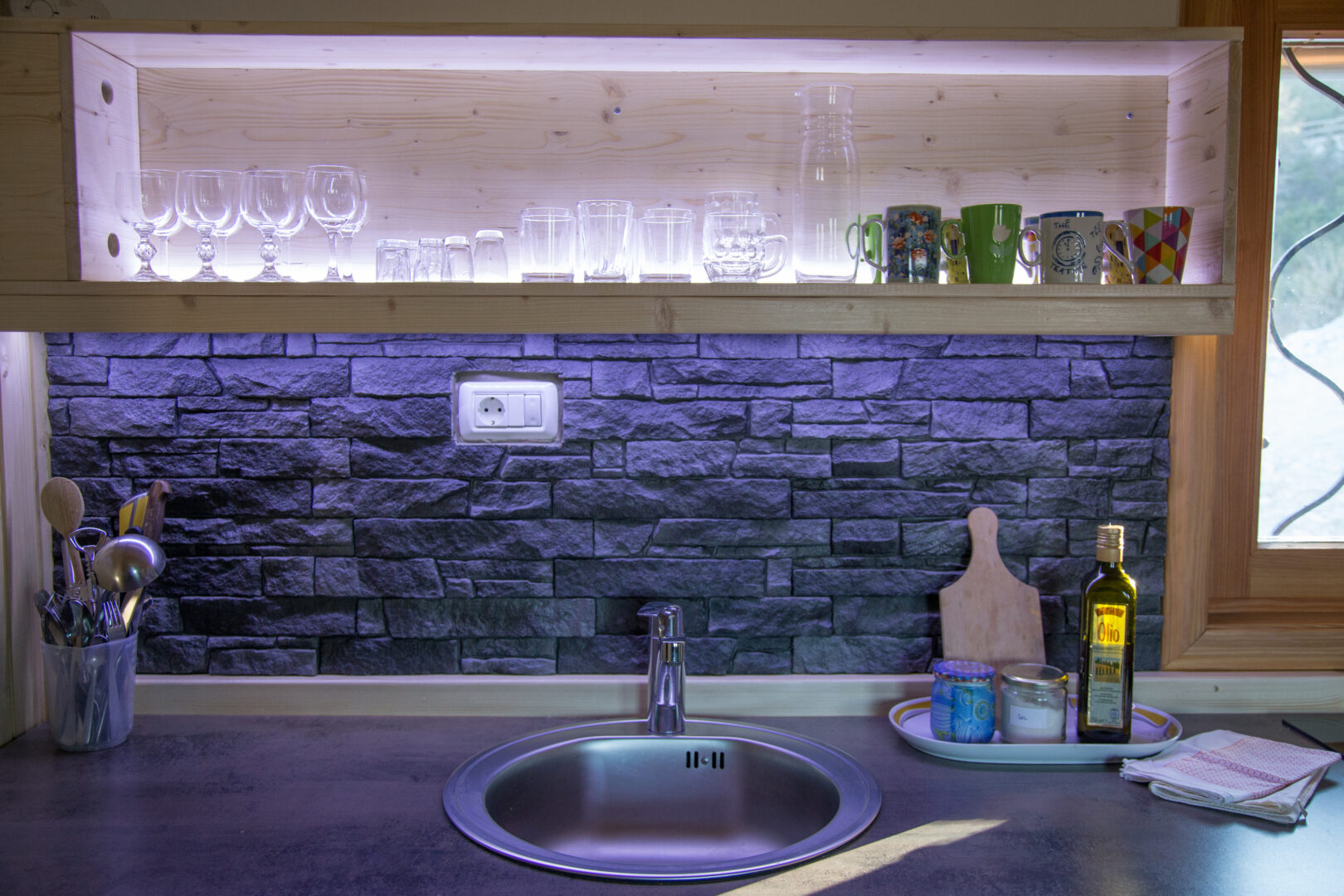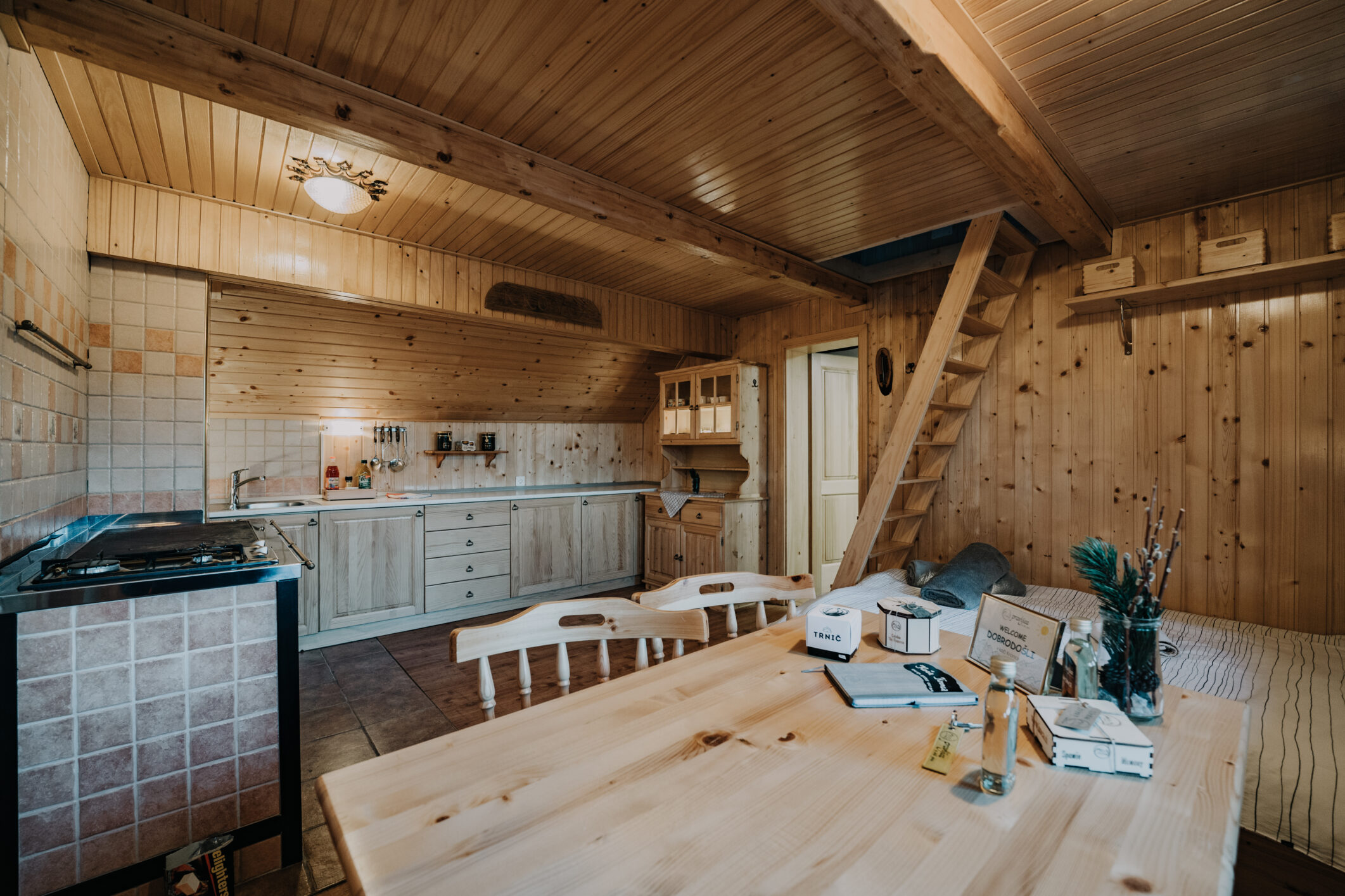 V koči je popolnoma opremljena kuhinja, hladilnik, kamin, talno gretje, kopalnica s prho, sušilec za lase, posteljnina, brisače, copati, finska savna ter brezplačen Wi-Fi. Za uživanje v prekrasnem razgledu so na terasi pred kočo na voljo ležalniki, za piknika željne pa zidan žar.