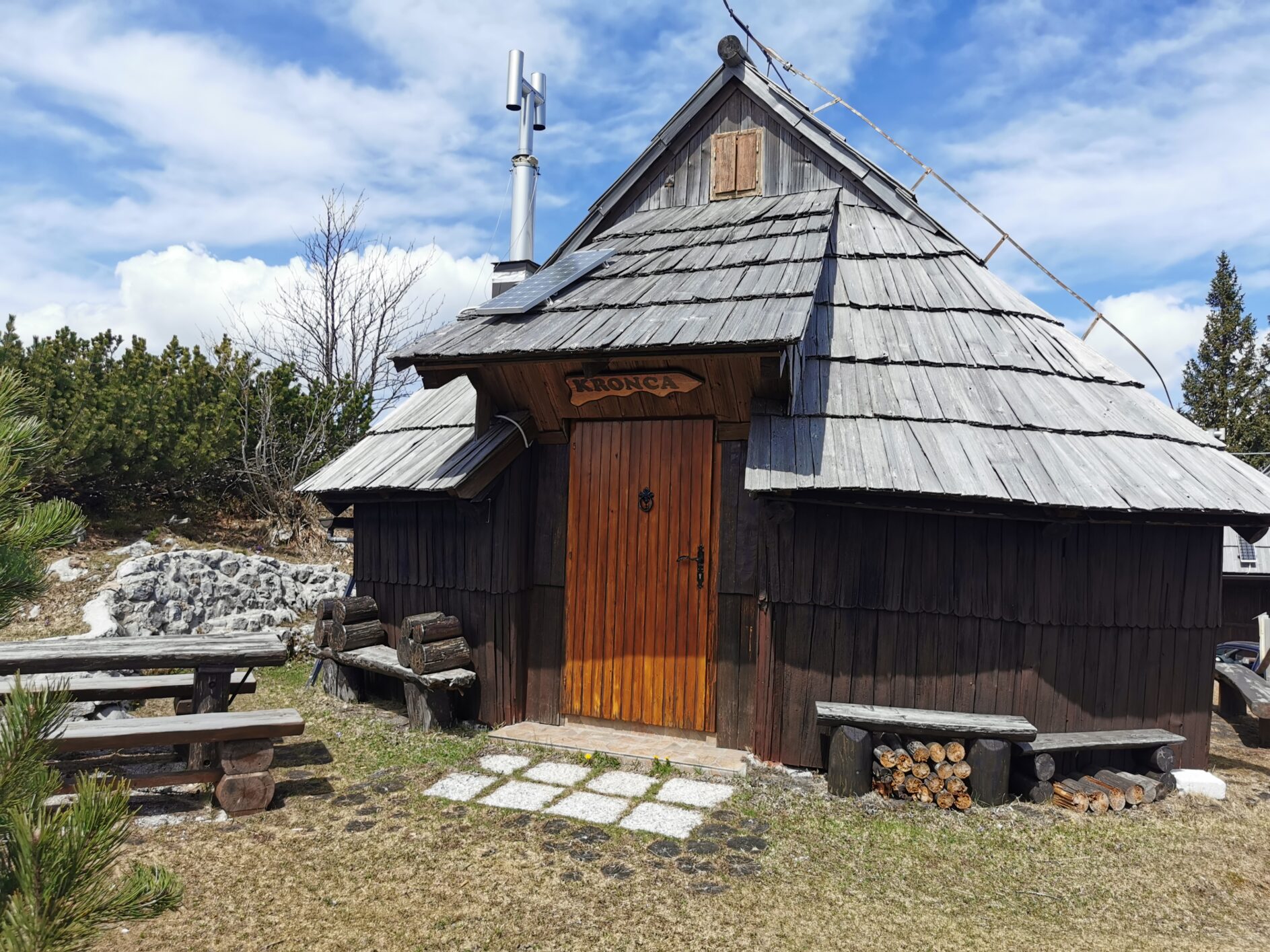 Koča Kronca je naša najmanjša koča, prenovljena v  starem in tradicionalnem stilu, kjer se prepletata domačnost, prvinskost in udobje. Koča leži na mirni lokacija, stran od vrveža in glavnih sprehajalnih poti. Ima kar dve terasi: eno skrito za ter eno veliko pred samo kočo. Preprostost koče nas ponese v vlogo pastirjev, kjer si ob starem “šporhetu” na drva pripravimo prijeten obrok ali pa zgolj uživamo v toplem večernem vzdušju prsketanja ognja. Majhna in simpatična koča ima veliko luksuzno kopalnico s talnim gretjem ter tušem s toplo vodo. Zgornja soba je pravi raj za otroke ali skupine prijateljev. Osrednji prostor poln topline pa je opremljen s kuhinjo, jedilnim kotom ter kavčem, ki je idealen za posteljo za dve osebi, ki želita mirnega oddiha v toplem gnezdecu. Koča je idealna za pare ali eno družino in lahko sprejme 7 oseb, dobrodošli pa so tudi hišni ljubljenčki.